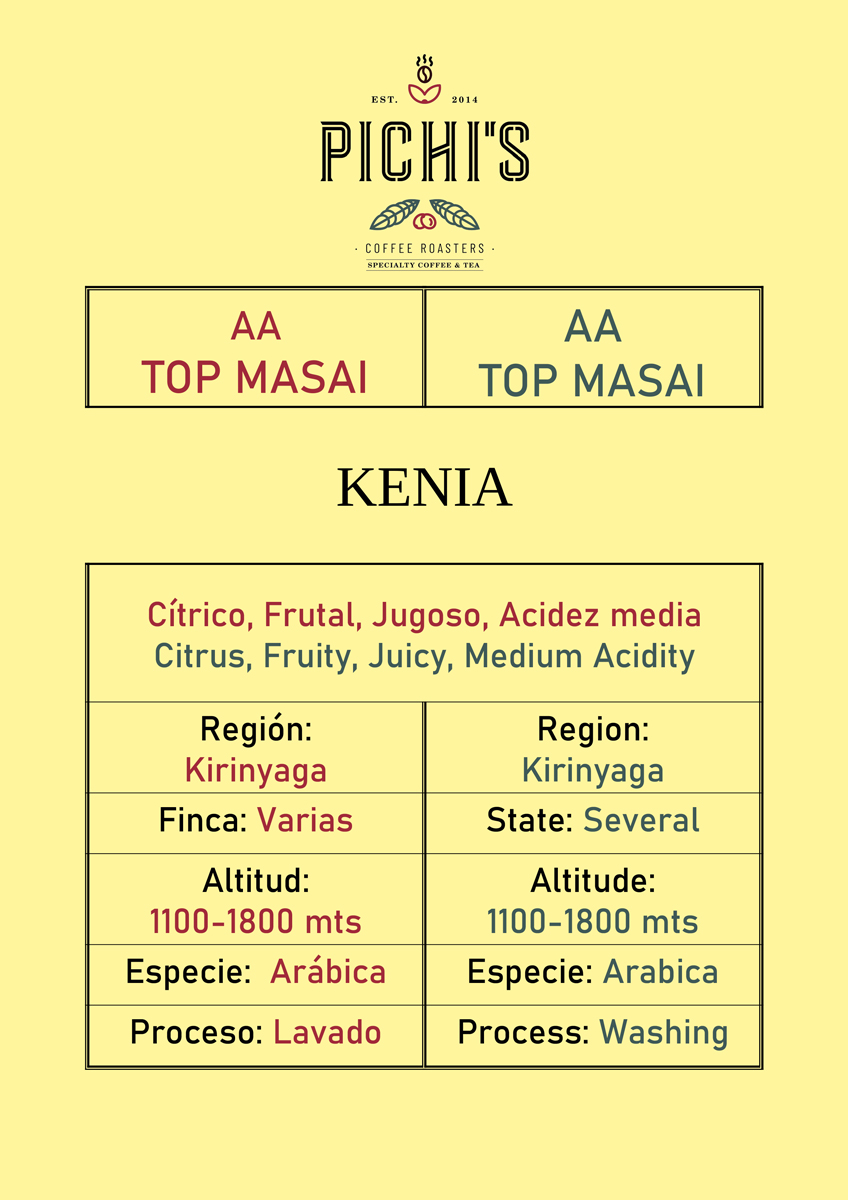 Este café de especialidad Kenia AA Top Massai en concreto, tiene una puntuación SCA de 86,5 sobre 100, con unas notas de cata a jazmín, cítricos, chocolate, frutal, y cedro. Un café brillante, jugoso, balanceado y complejo.