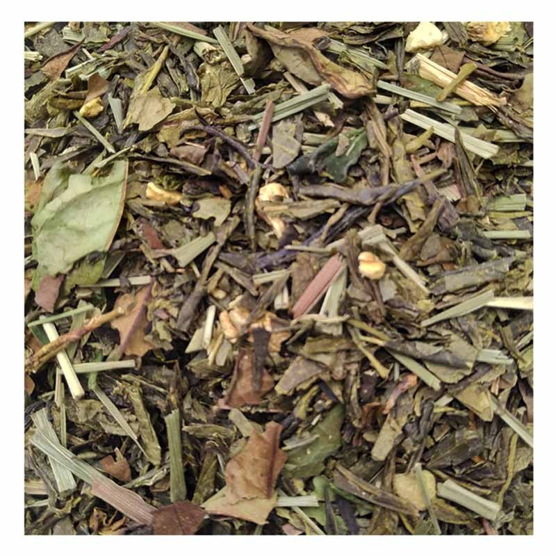 Combinación de té verde Sencha con jengibre y limón. Si te gustan los tés frios y naturales prueba a infusionártelo y guardarlo después en la nevera, ¡ te sorprenderá ¡, un té muy agradable de beber.